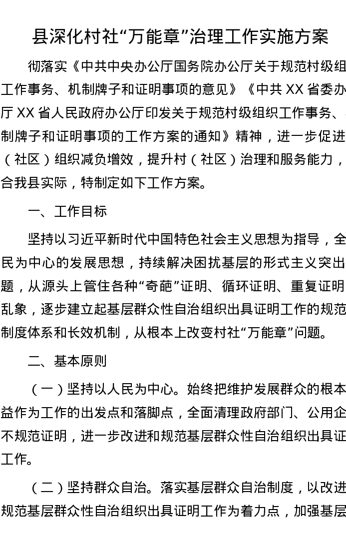 县深化村社“万能章”治理工作实施方案