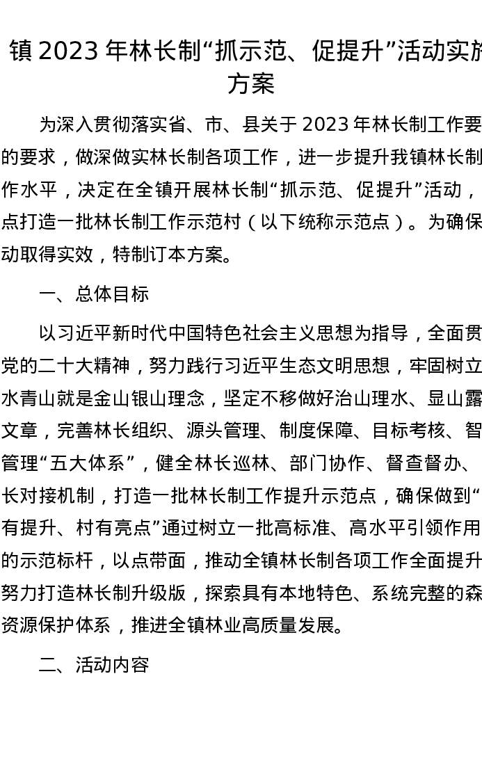 镇2023年林长制“抓示范、促提升”活动实施方案