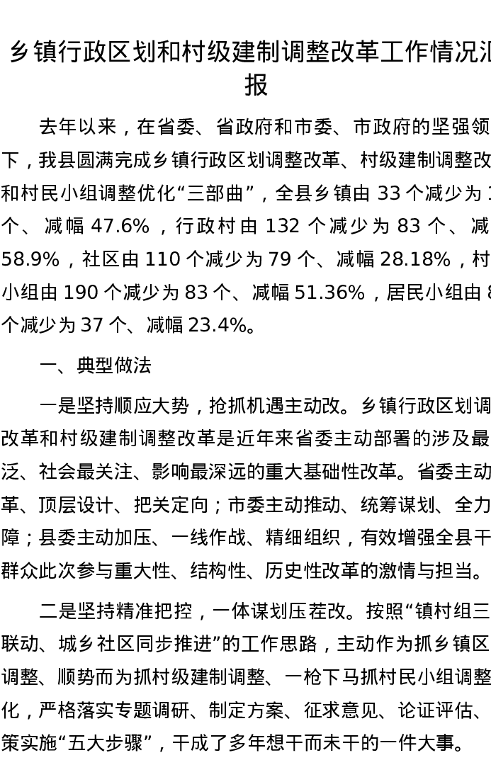乡镇行政区划和村级建制调整改革工作情况汇报