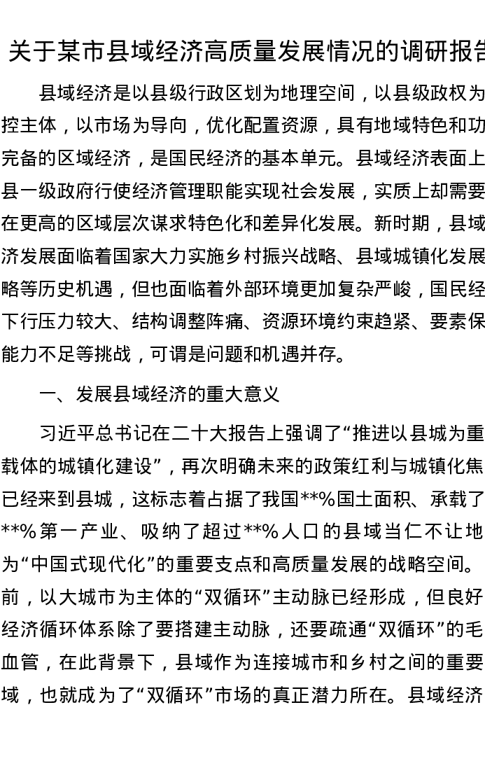 关于某市县域经济高质量发展情况的调研报告