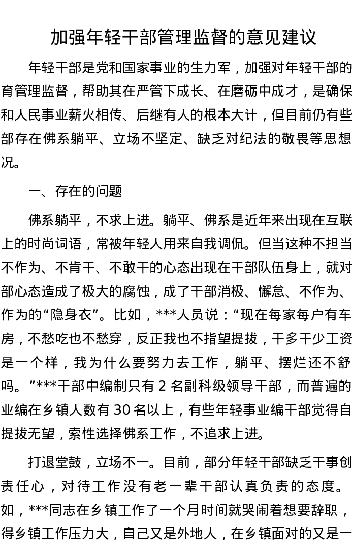 加强年轻干部管理监督的意见建议