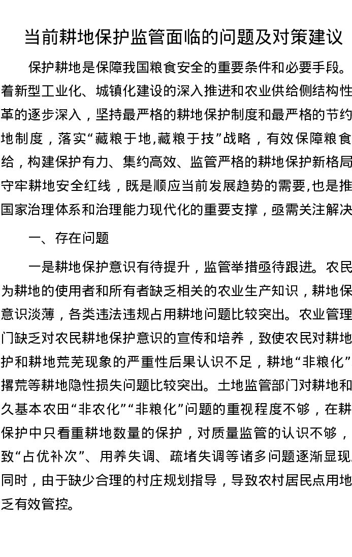 当前耕地保护监管面临的问题及对策建议