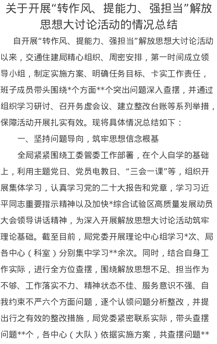 关于开展“转作风、提能力、强担当”解放思想大讨论活动的情况总结