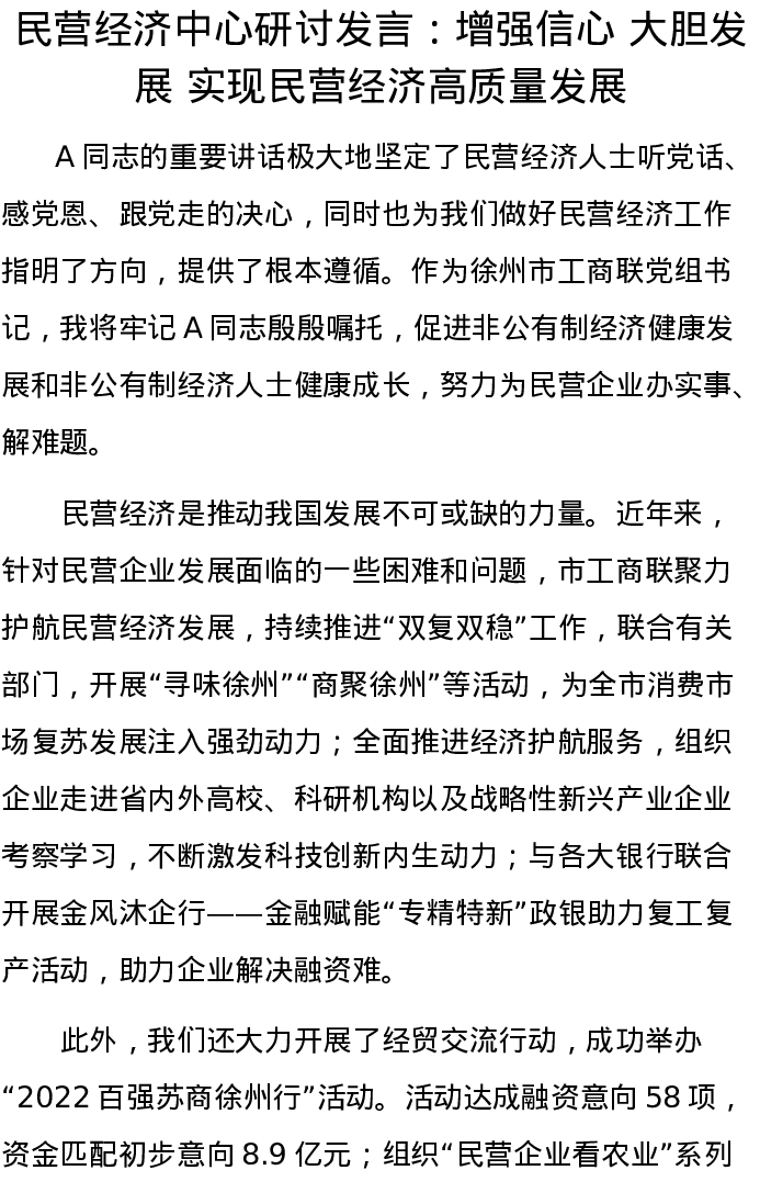 民营经济中心研讨发言增强信心大胆发展实现民营经济高质量发展