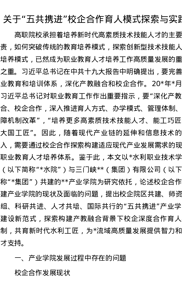 关于“五共携进”校企合作育人模式探索与实践
