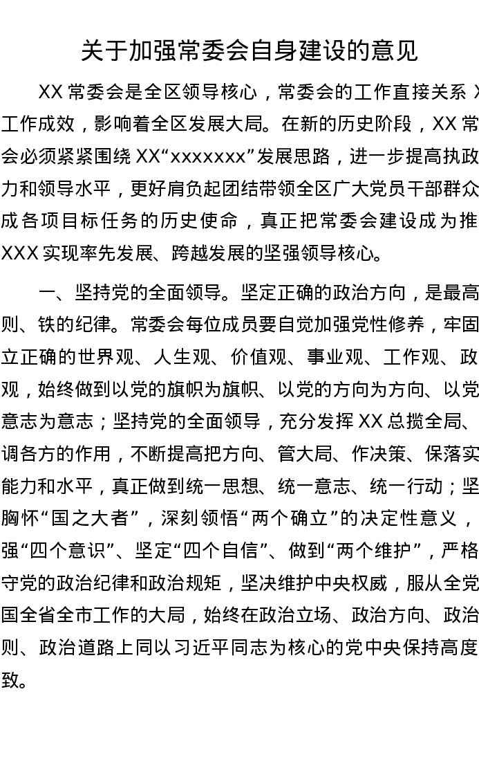 关于加强常委会自身建设的意见