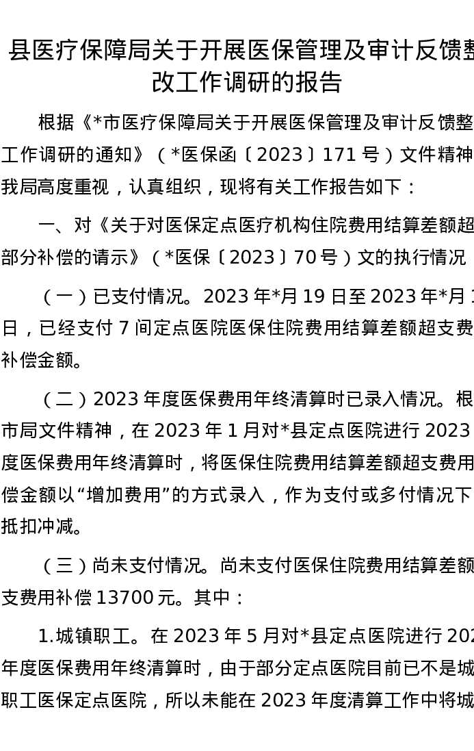 县医疗保障局关于开展医保管理及审计反馈整改工作调研的报告