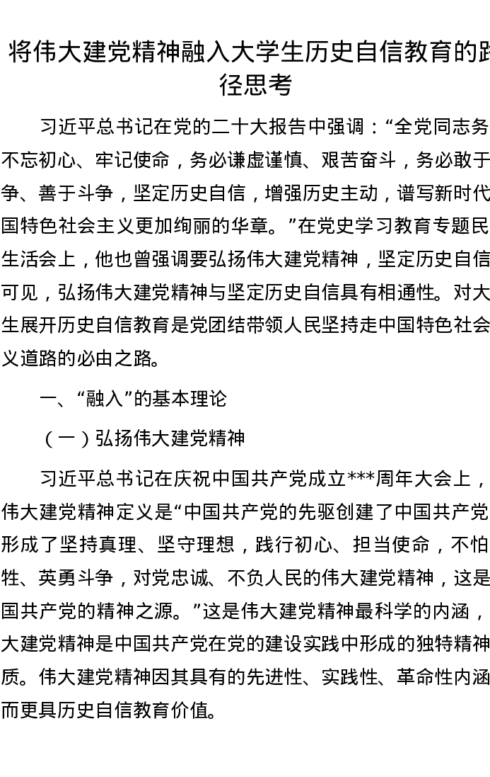将伟大建党精神融入大学生历史自信教育的路径思考