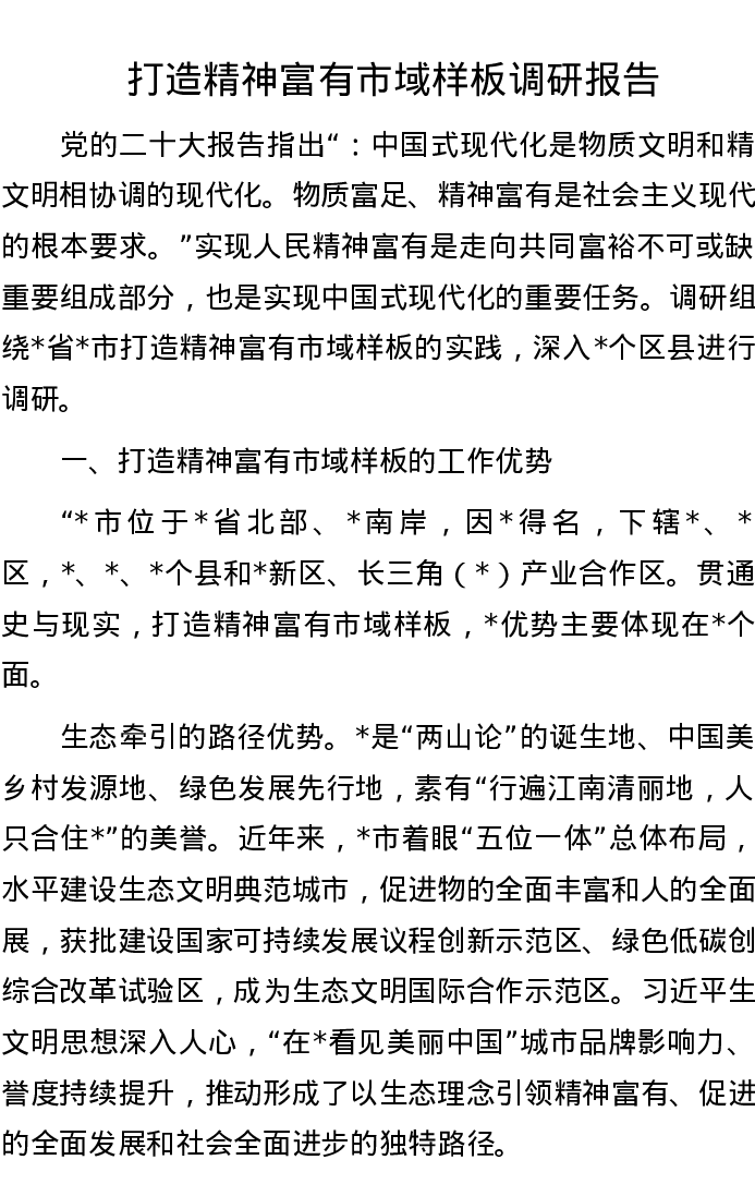 打造精神富有市域样板调研报告
