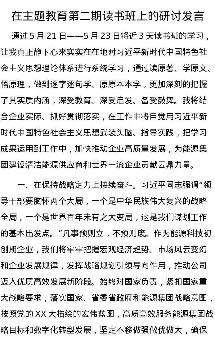 在主题教育第二期读书班上的研讨发言(特色社会主义思想)