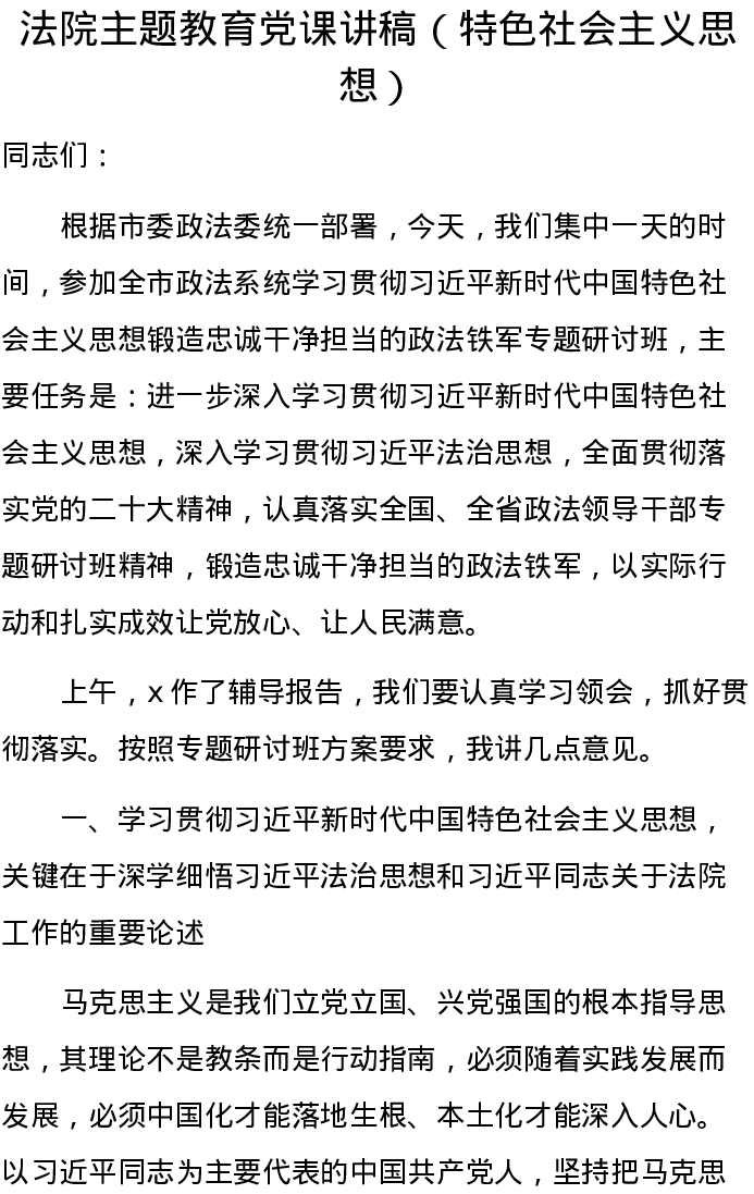 法院主题教育党课讲稿(特色社会主义思想)