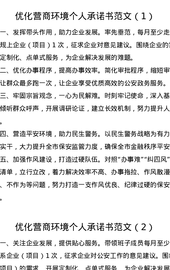 汇编:优化营商环境承诺书6篇