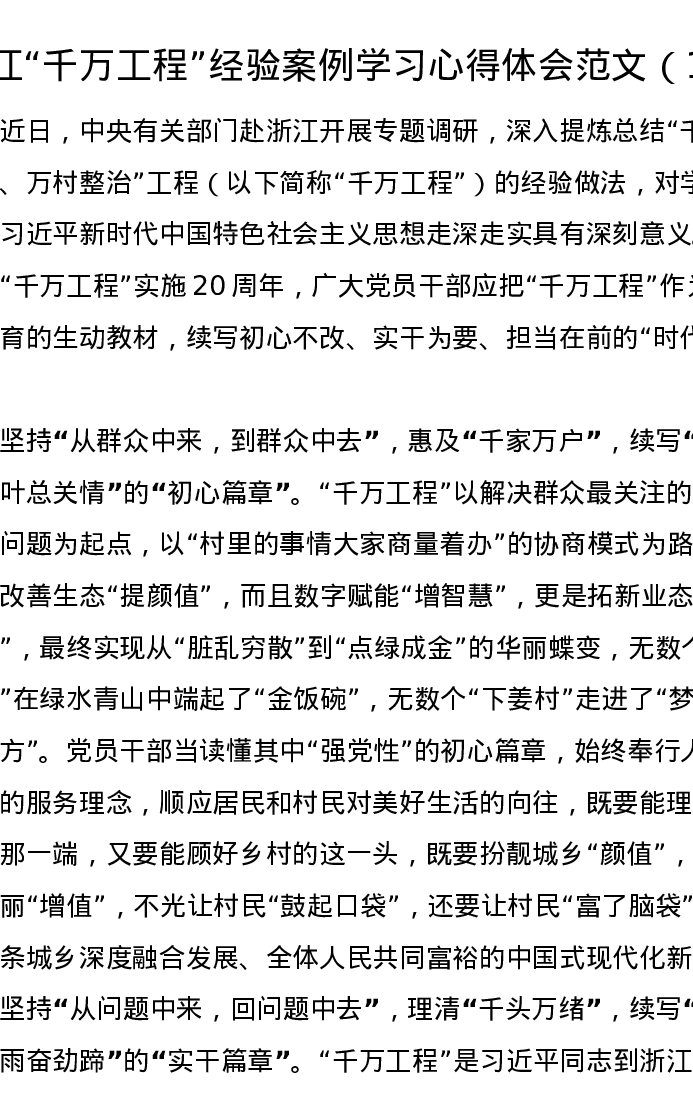 汇编:“千万工程”“浦江经验”研讨发言6篇(学习心得体会)