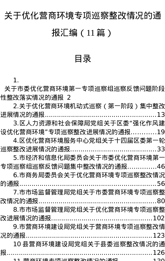 汇编:关于优化营商环境专项巡察整改情况的通报11篇