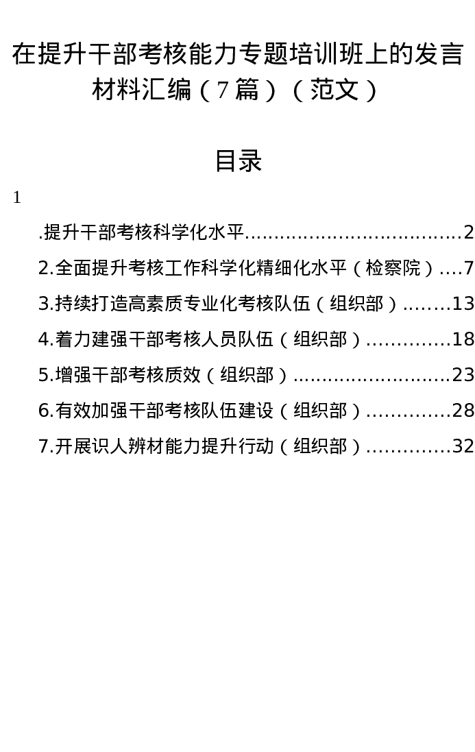汇编:在提升干部考核能力专题培训班上的发言7篇