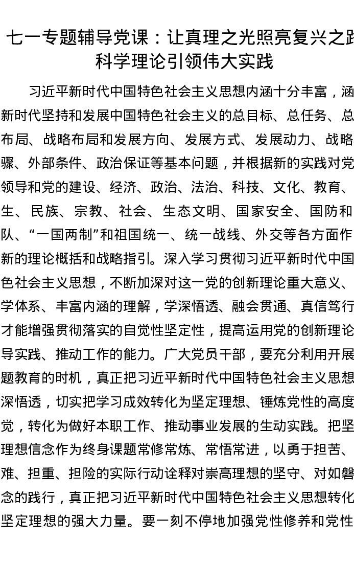 七一专题辅导党课:让真理之光照亮复兴之路科学理论引领伟大实践