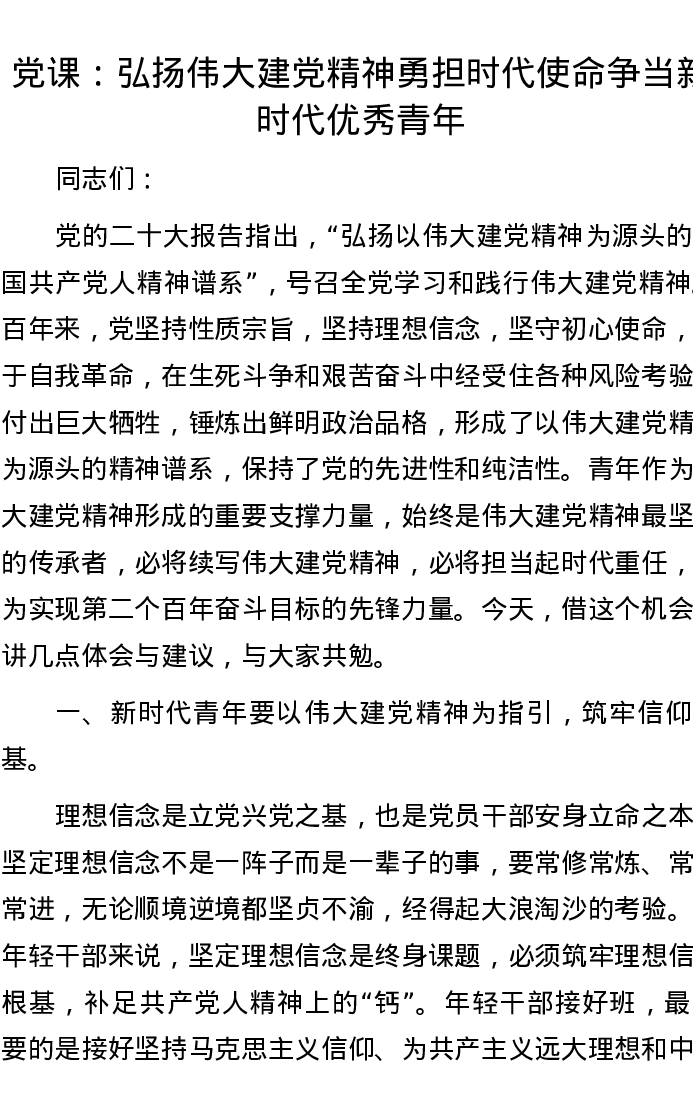 党课:弘扬伟大建党精神 勇担时代使命 争当新时代优秀青年