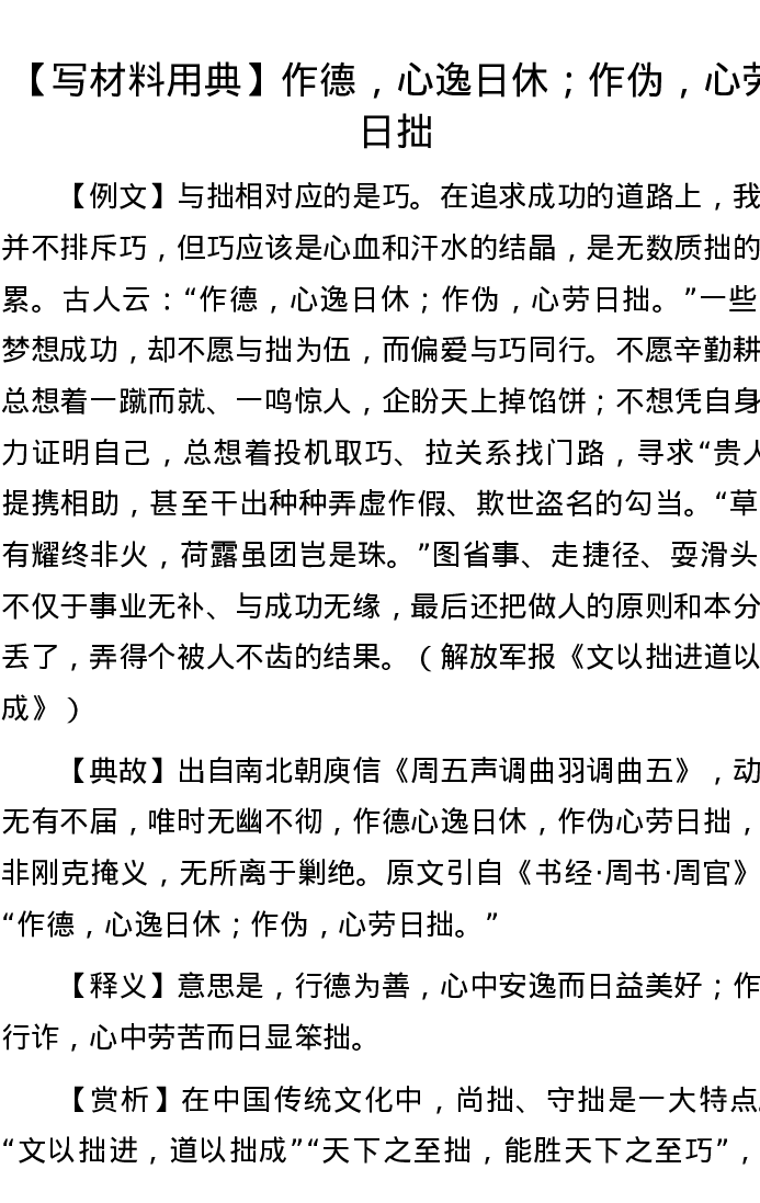【写材料用典】作德,心逸日休;作伪,心劳日拙