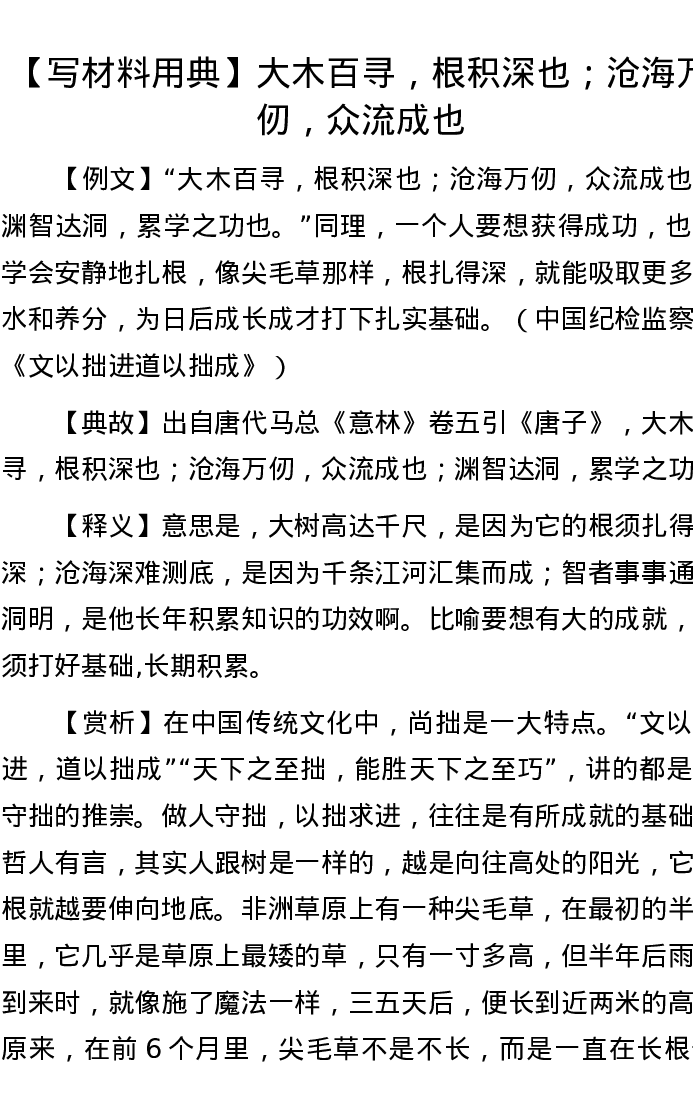 【写材料用典】大木百寻,根积深也;沧海万仞,众流成也