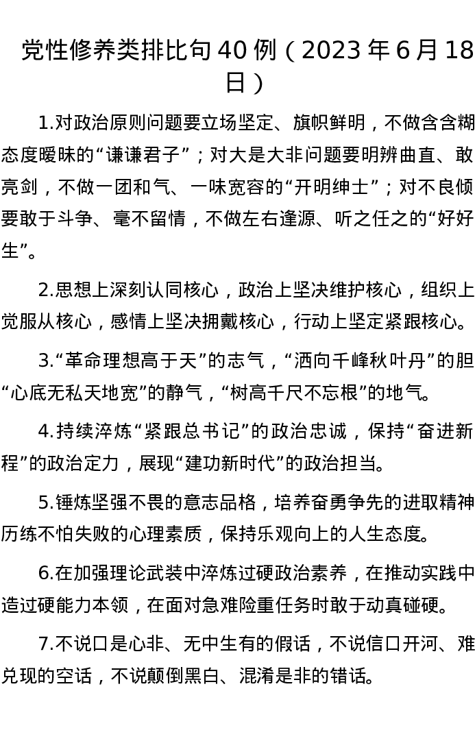党性修养类排比句40例(2023年6月18日)