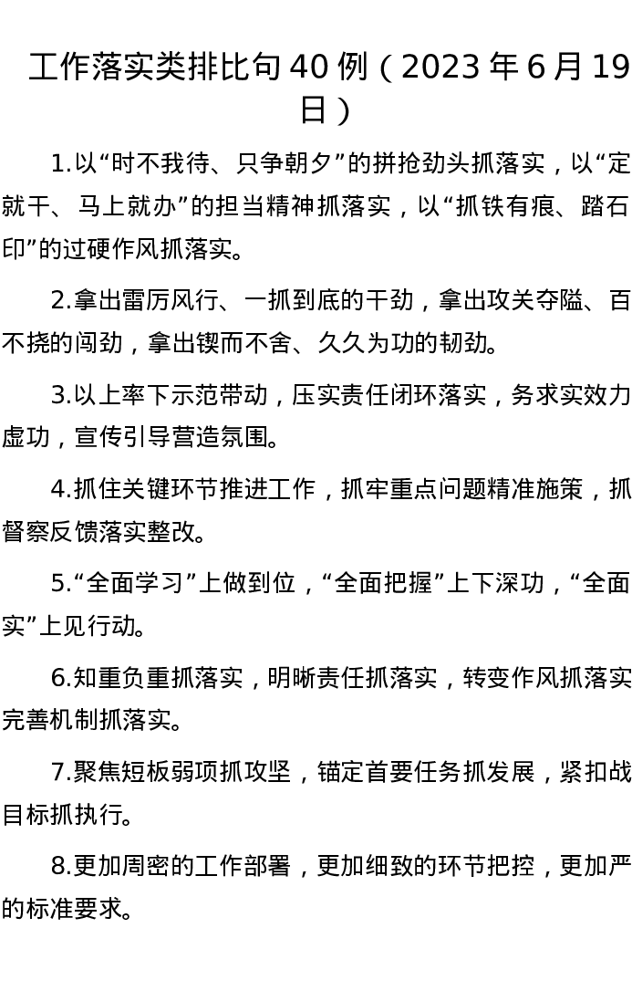 工作落实类排比句40例(2023年6月19日)