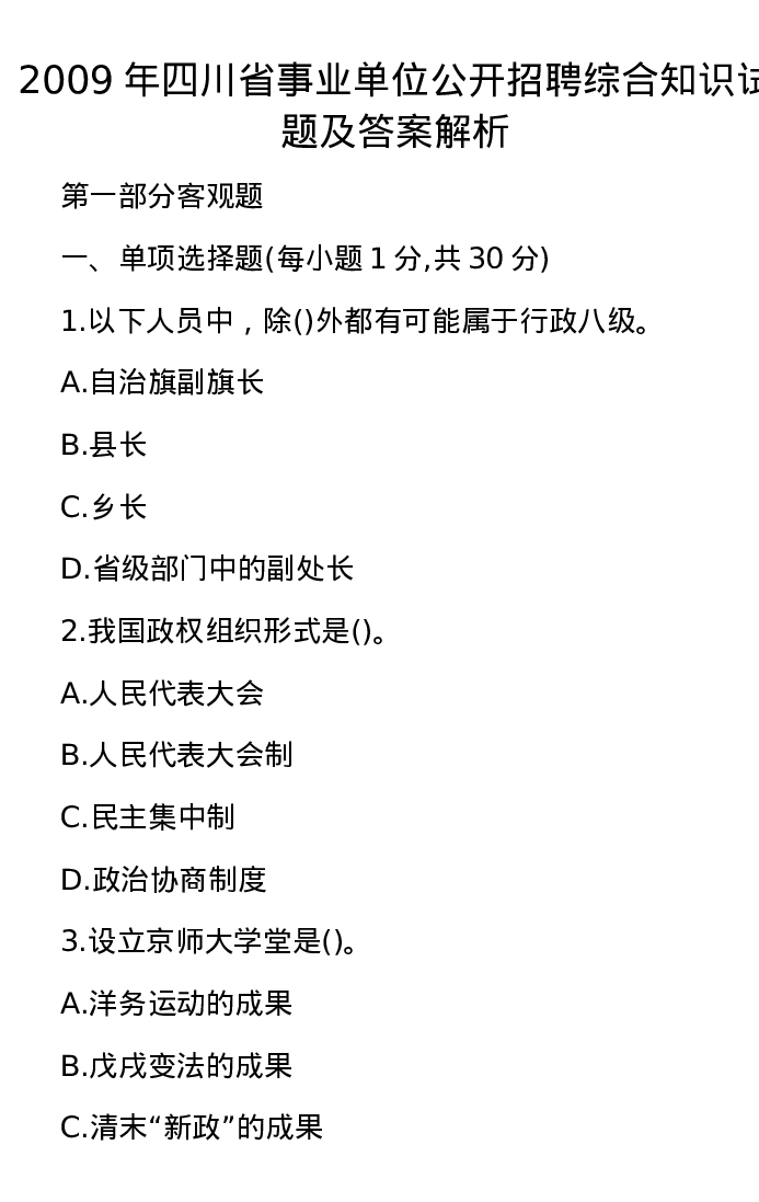 2009年四川省事业单位公开招聘综合知识试题及答案解析