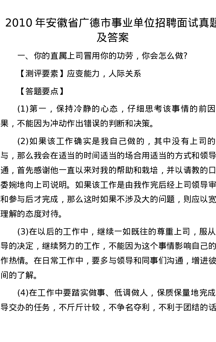 2010年安徽省广德市事业单位招聘面试真题及答案