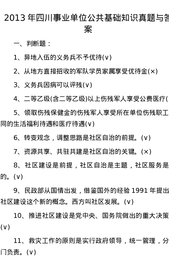 2013年四川事业单位公共基础知识真题与答案