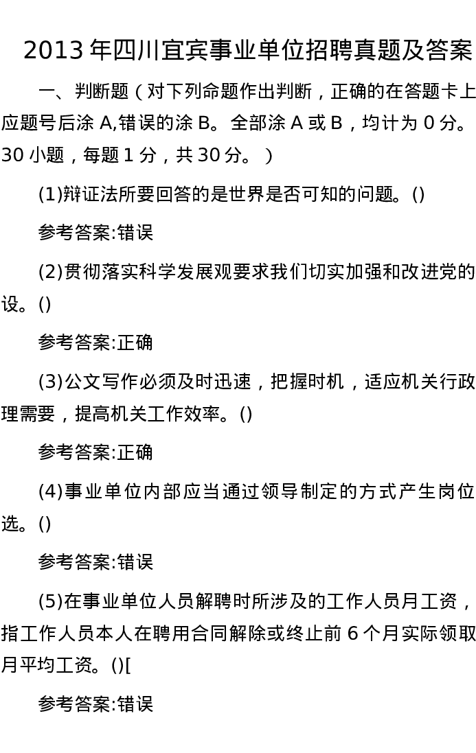 2013年四川宜宾事业单位招聘真题及答案