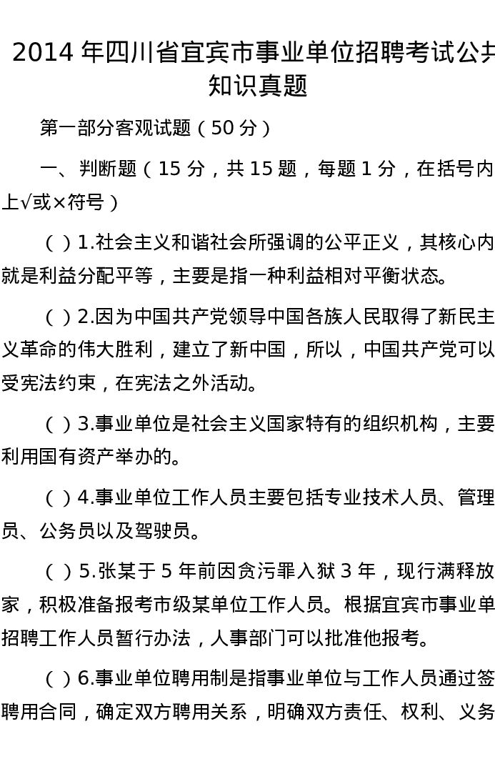 2014年四川省宜宾市事业单位招聘考试公共知识真题