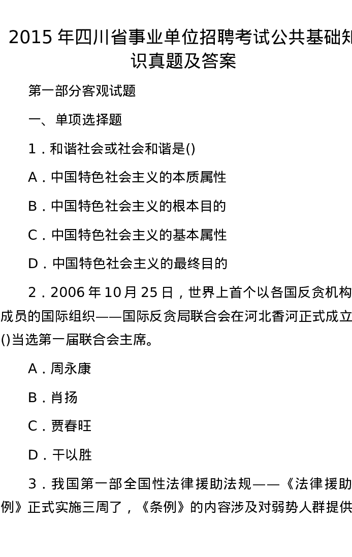 2015年四川省事业单位招聘考试公共基础知识真题及答案