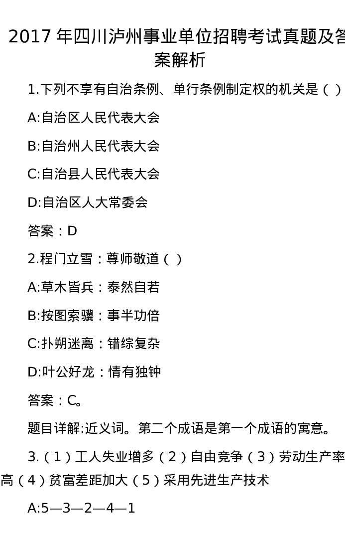 2017年四川泸州事业单位招聘考试真题及答案解析