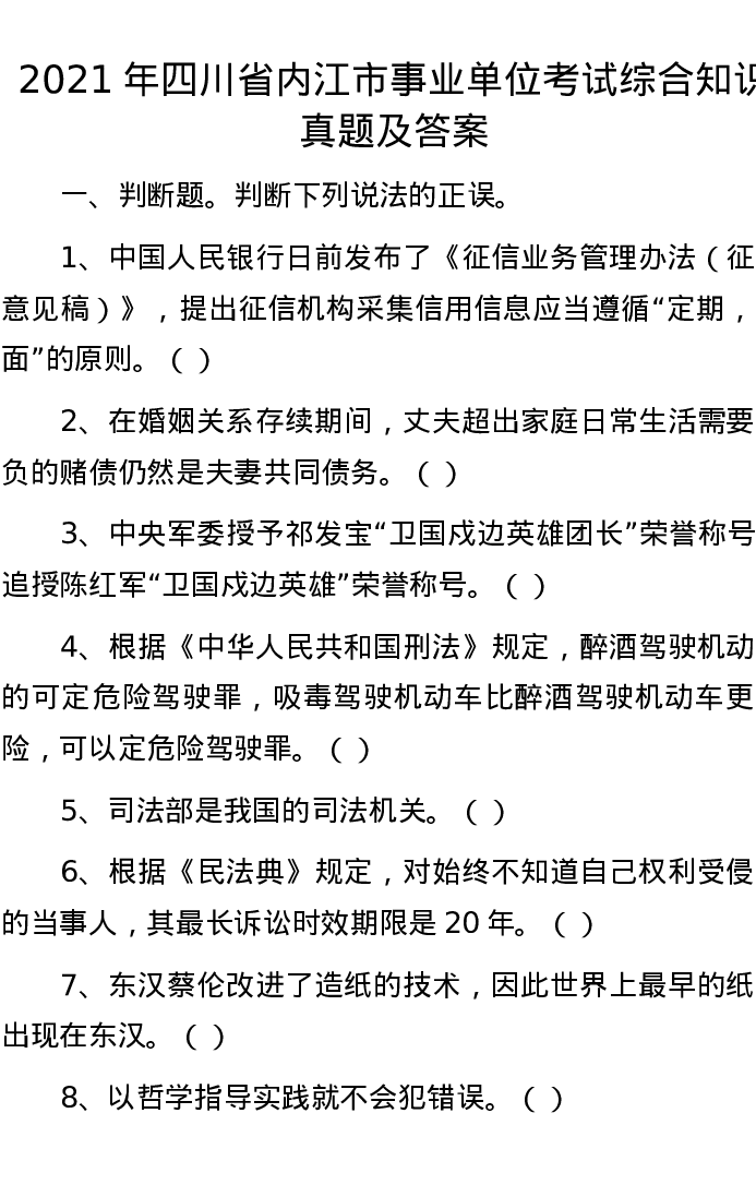 2021年四川省内江市事业单位考试综合知识真题及答案