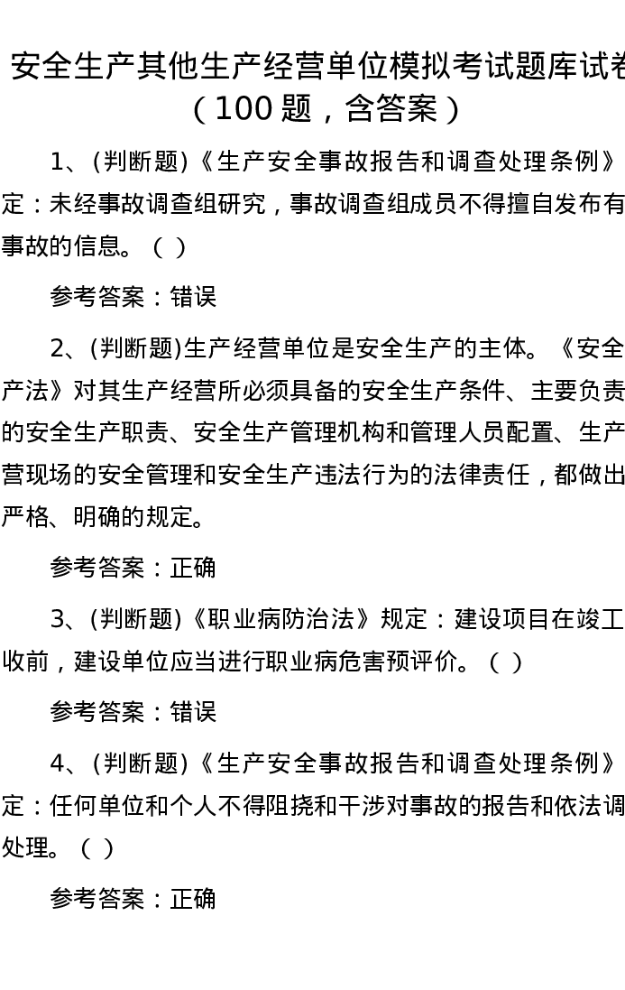 安全生产其他生产经营单位模拟考试题库试卷(100题,含答案)
