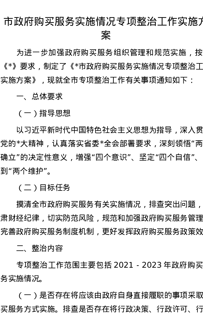 市政府购买服务实施情况专项整治工作实施方案