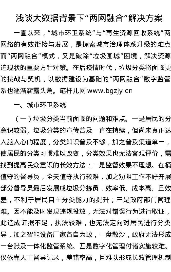 浅谈大数据背景下“两网融合”解决方案