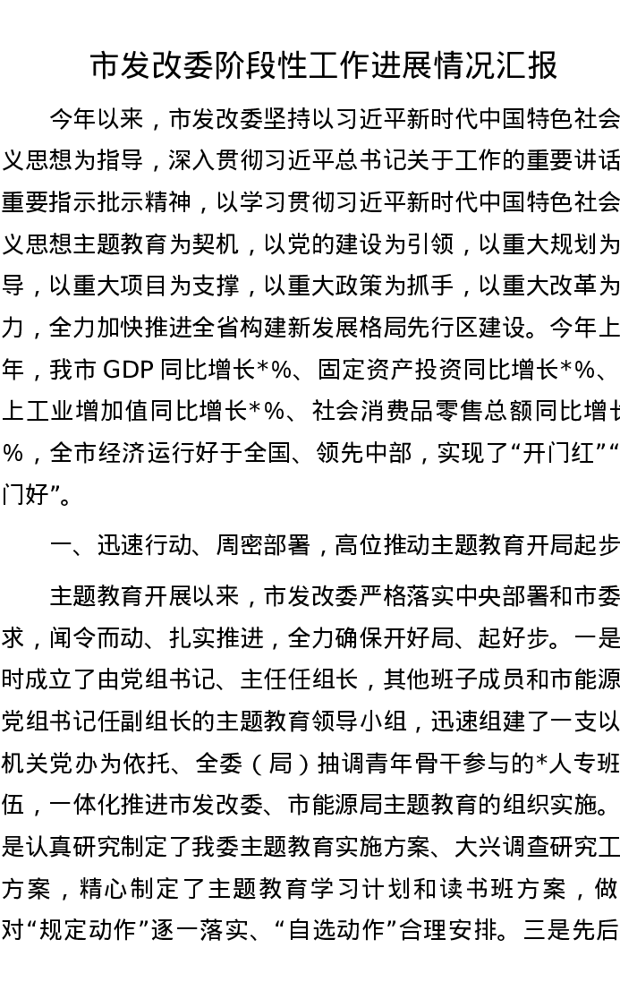 市发改委阶段性工作进展情况汇报