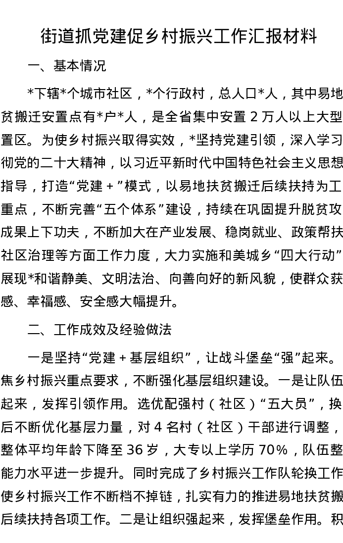 街道抓党建促乡村振兴工作汇报材料