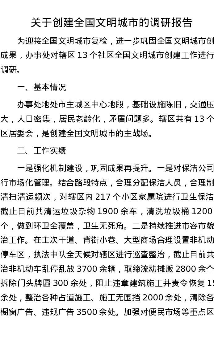 关于创建全国文明城市的调研报告