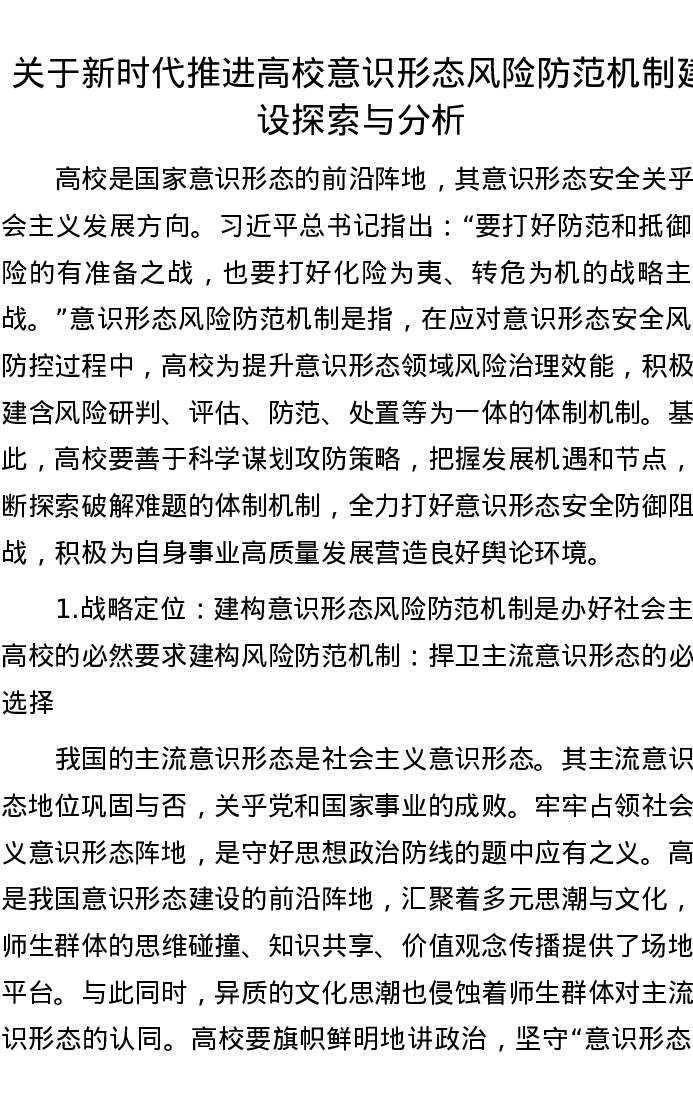 关于新时代推进高校意识形态风险防范机制建设探索与分析