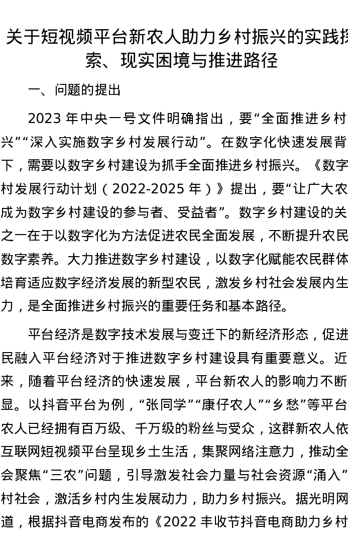 关于短视频平台新农人助力乡村振兴的实践探索、现实困境与推进路径