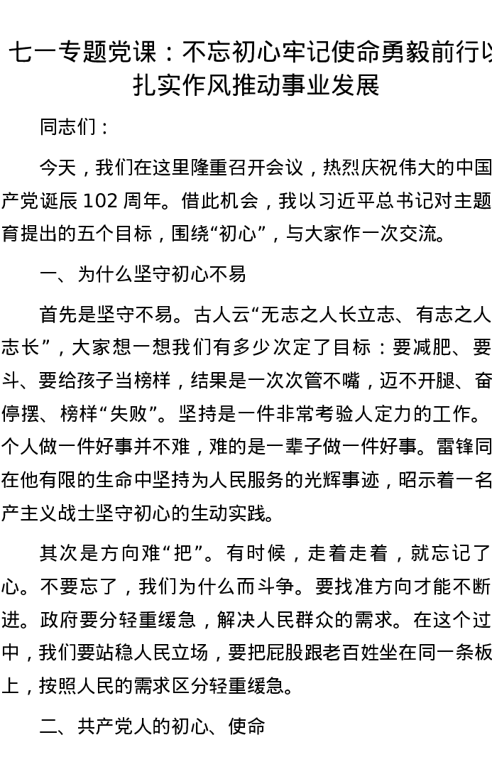 七一专题党课:不忘初心 牢记使命 勇毅前行 以扎实作风推动事业发展