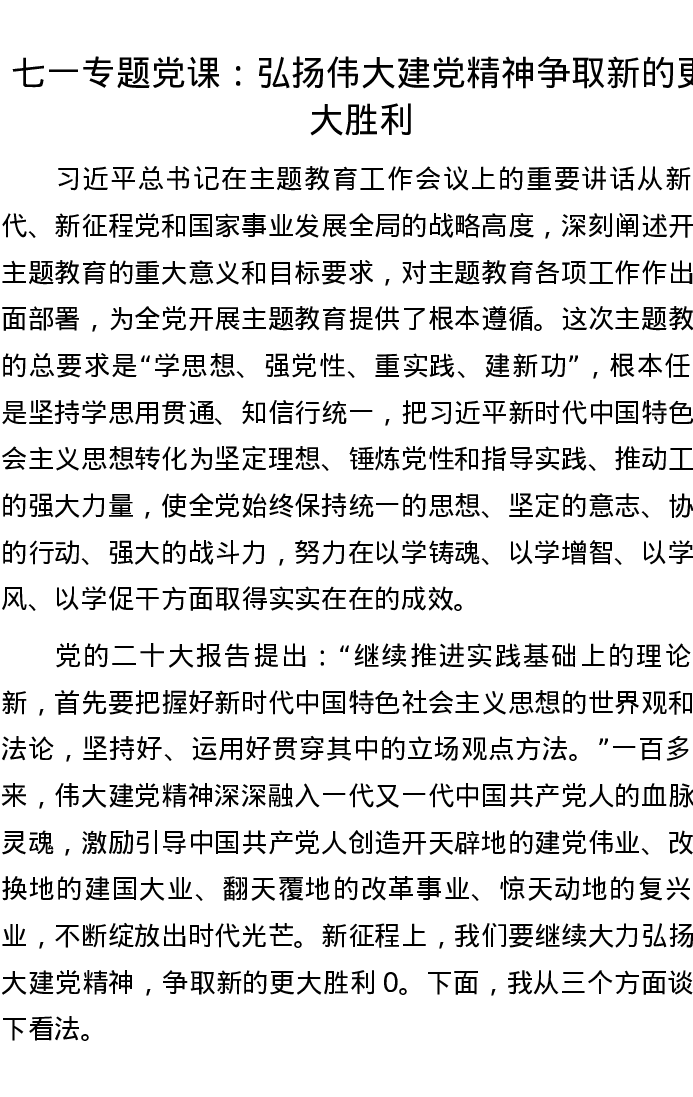 七一专题党课:弘扬伟大建党精神争取新的更大胜利