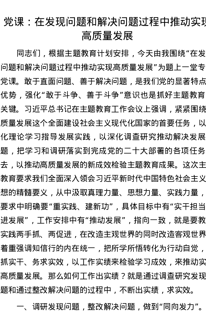 党课:在发现问题和解决问题过程中推动实现高质量发展