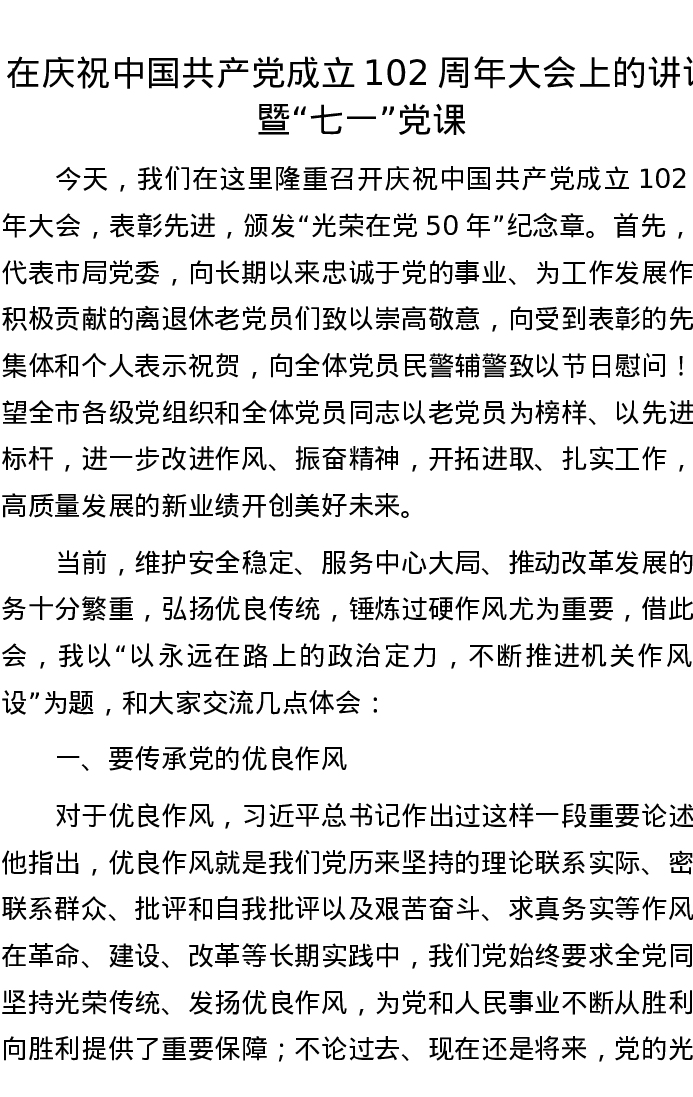 在庆祝中国共产党成立102周年大会上的讲话暨“七一”党课