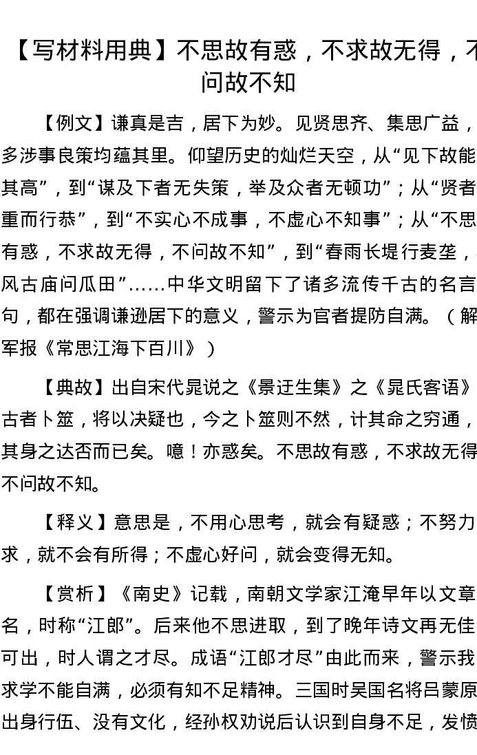 【写材料用典】不思故有惑,不求故无得,不问故不知