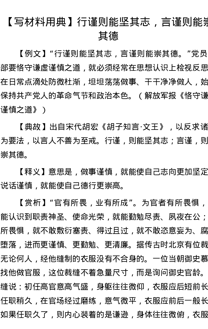 【写材料用典】行谨则能坚其志,言谨则能崇其德