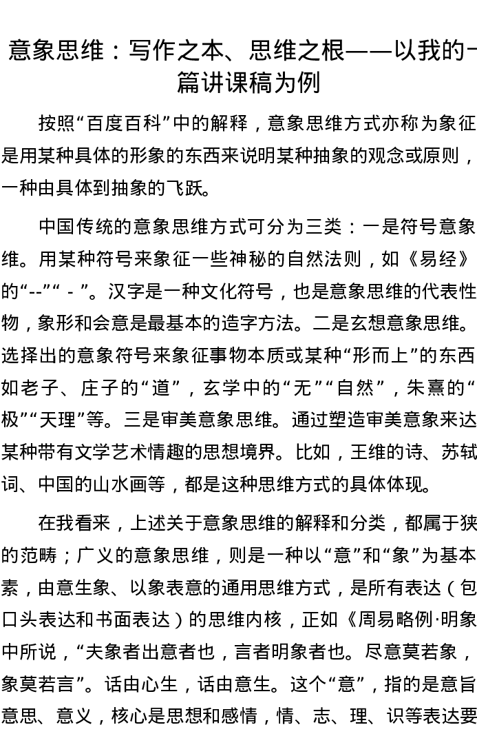 意象思维:写作之本、思维之根——以我的一篇讲课稿为例