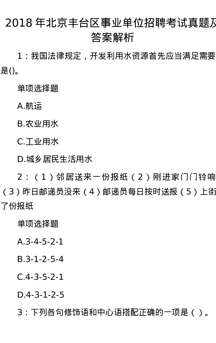 2018年北京丰台区事业单位招聘考试真题及答案解析