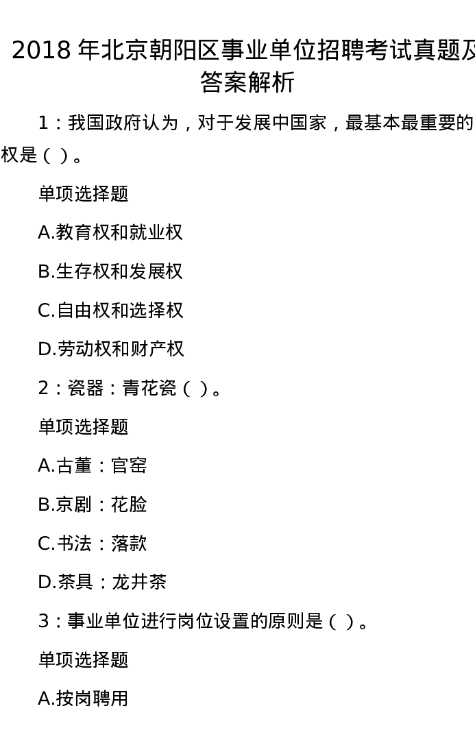2018年北京朝阳区事业单位招聘考试真题及答案解析